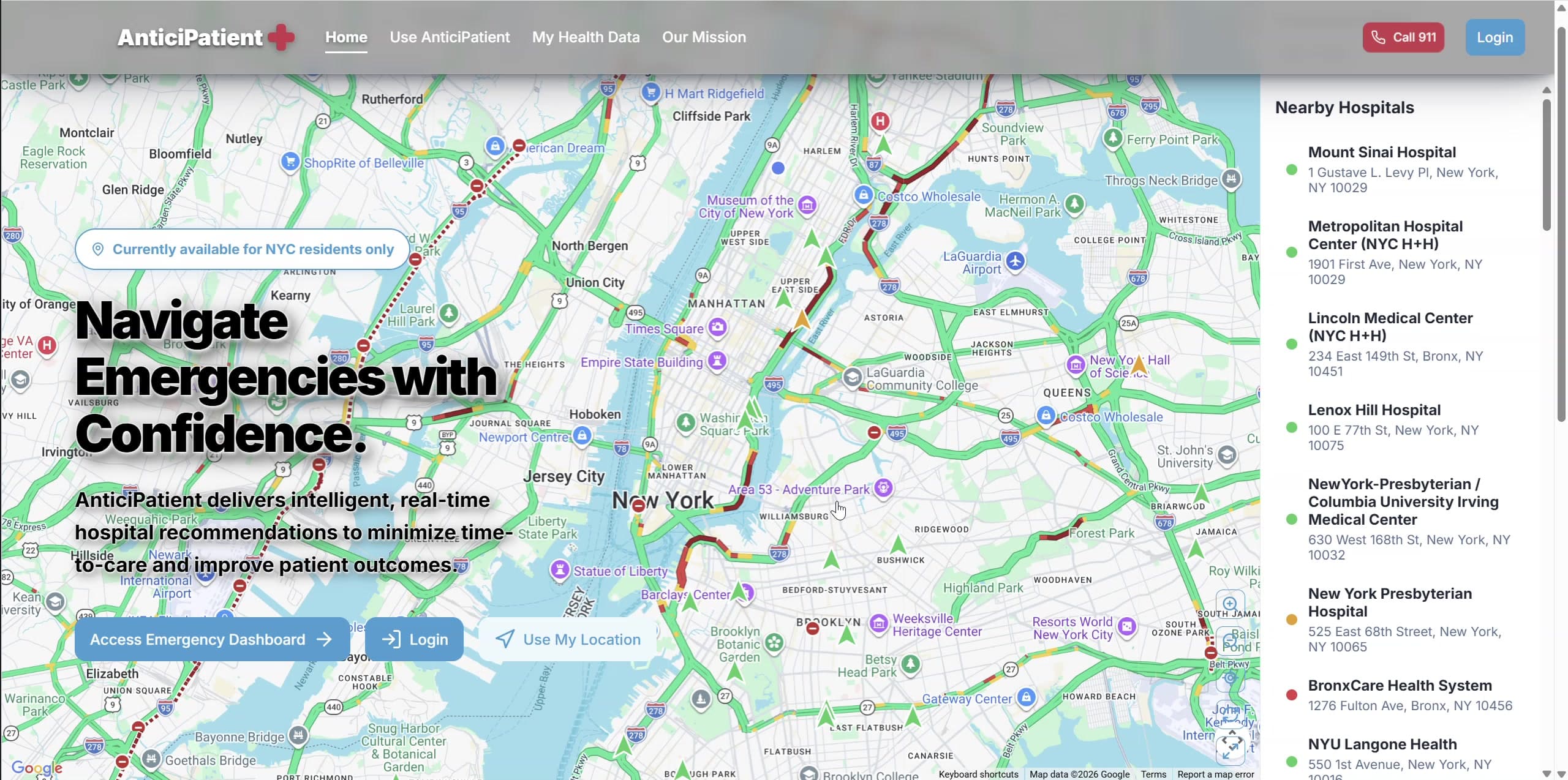 Full-stack platform that fuses real-time hospital data with patient-specific context to recommend the right hospital, the right way to get there, and the right care to administer on the way.